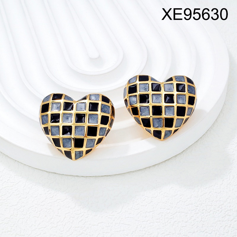 Home > Level B Stainless Steel New Trendy Women Jewelry Drip Oil/Enamel Heart Golden Valentine's Day Earrings
