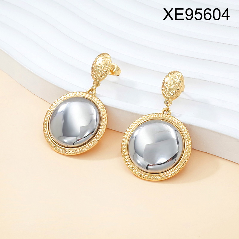 Home > Level B Stainless Steel New Trendy Women Jewelry Round Two Tone Earrings
