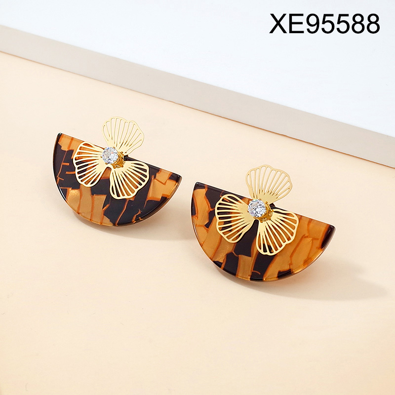 Home > Level B Stainless Steel New Trendy Women Jewelry Semicircle Flower Golden Earrings