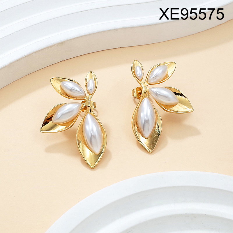 Level B Stainless Steel New Trendy Women Jewelry Pearl Style/Plastic Beads Flower Golden Earrings