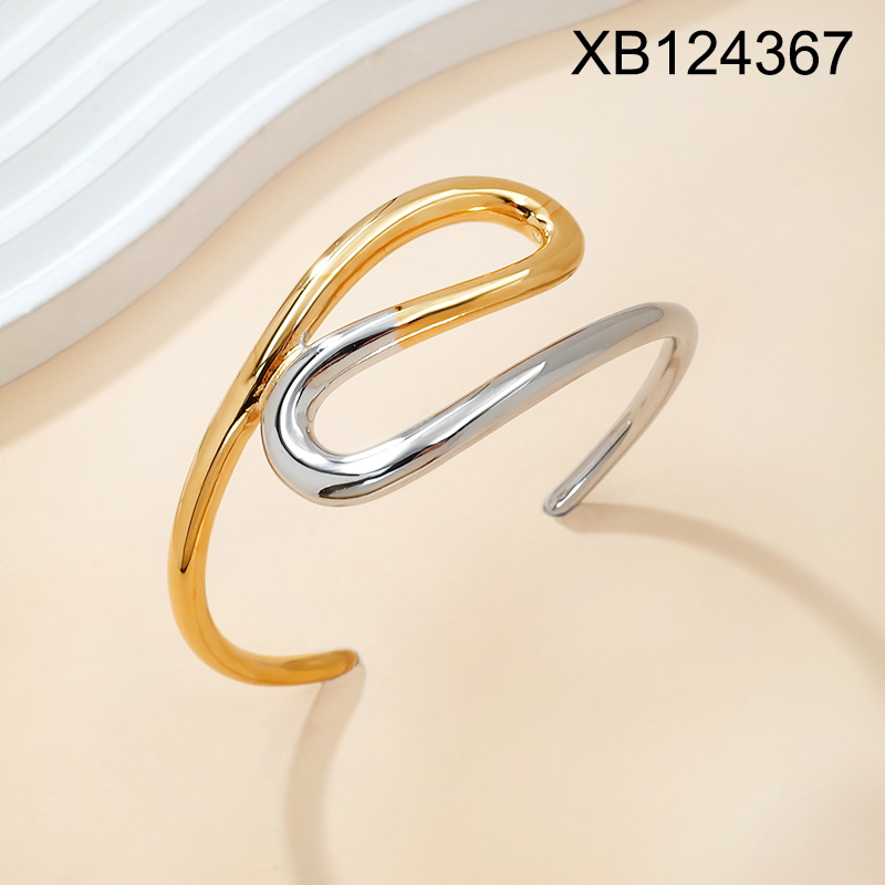 Level B Stainless Steel New Trendy Women Jewelry Two Tone Open Bangle;Bangle size can be adjusted freely