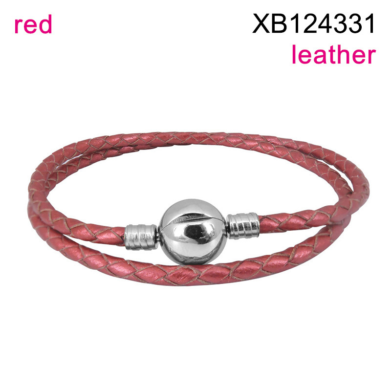 Level B Stainless Steel New Trendy Women Jewelry Two Layers Chain Steel color Leather Bracelet