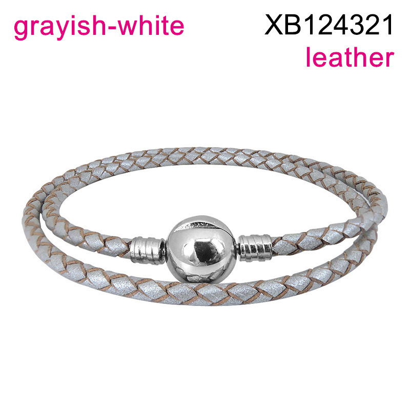 Level B Stainless Steel New Trendy Women Jewelry Two Layers Chain Steel color Leather Bracelet