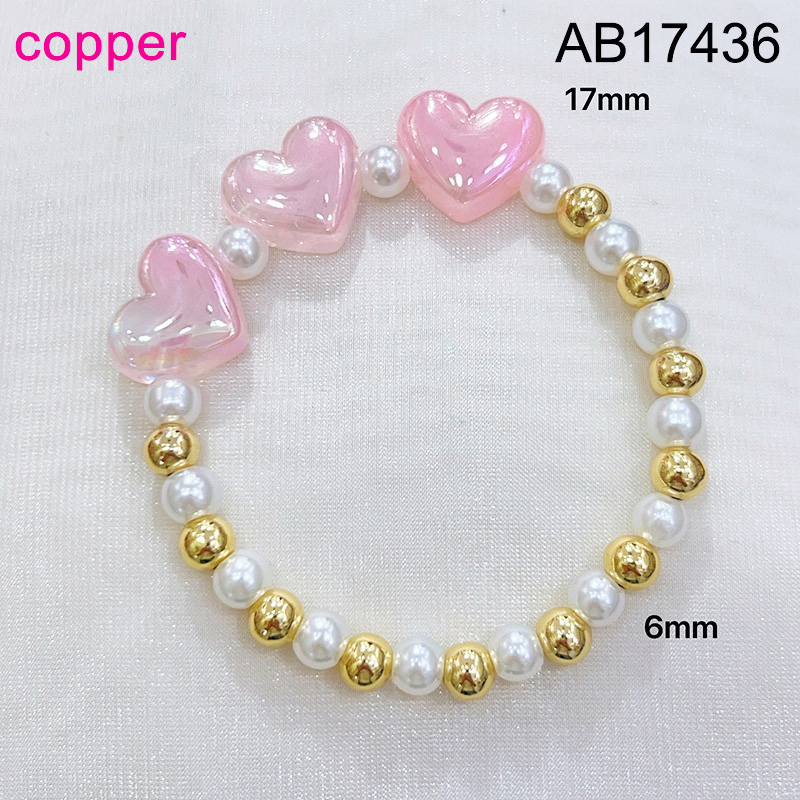 Level B Fashion Jewelry New Trendy Women Jewelry Pearl Style/Plastic Beads Heart Golden Valentine's Day Elastic Bracelet;Material:copper (cobre)