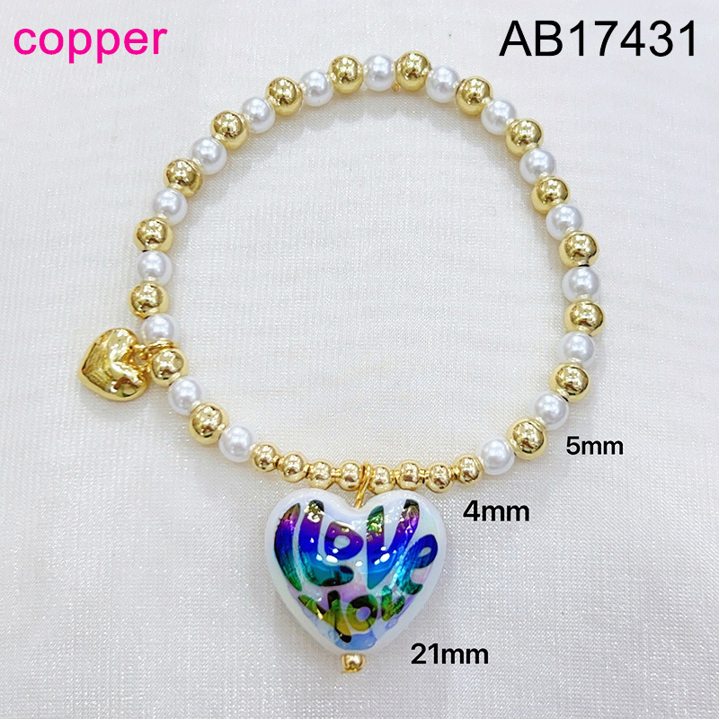 Home > Level B Fashion Jewelry New Trendy Women Jewelry Pearl Style/Plastic Beads Heart Golden Valentine's Day Elastic Bracelet;Material:copper (cobre)