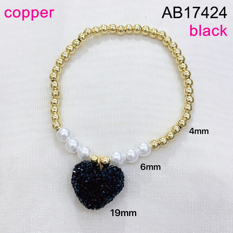 Level B Fashion Jewelry New Trendy Women Jewelry Pearl Style/Plastic Beads Heart Golden Valentine's Day Elastic Bracelet;Material:copper (cobre)