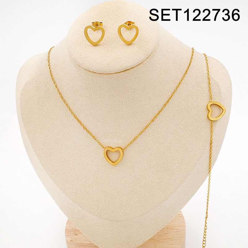 Home > Level B Stainless Steel Jewelry New Trendy Heart Golden Valentine's Day 3pcs SET