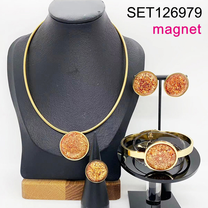 Level B Stainless Steel New Trendy Women Jewelry Round Golden Magnet buckle 4pcs SET