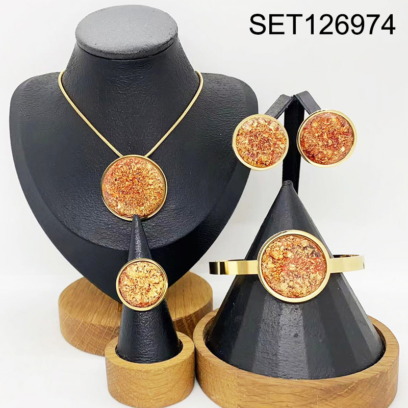 Level B Stainless Steel New Trendy Women Jewelry Round Golden 4pcs SET