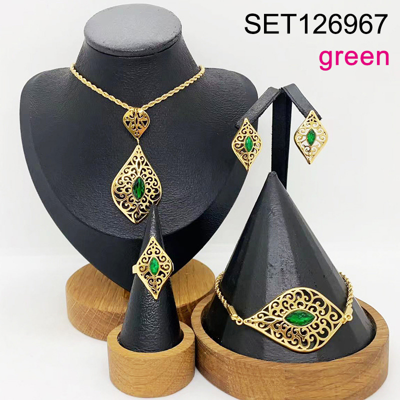 Level B Stainless Steel New Trendy Women Jewelry Green Stone Water Drip Golden 4pcs SET