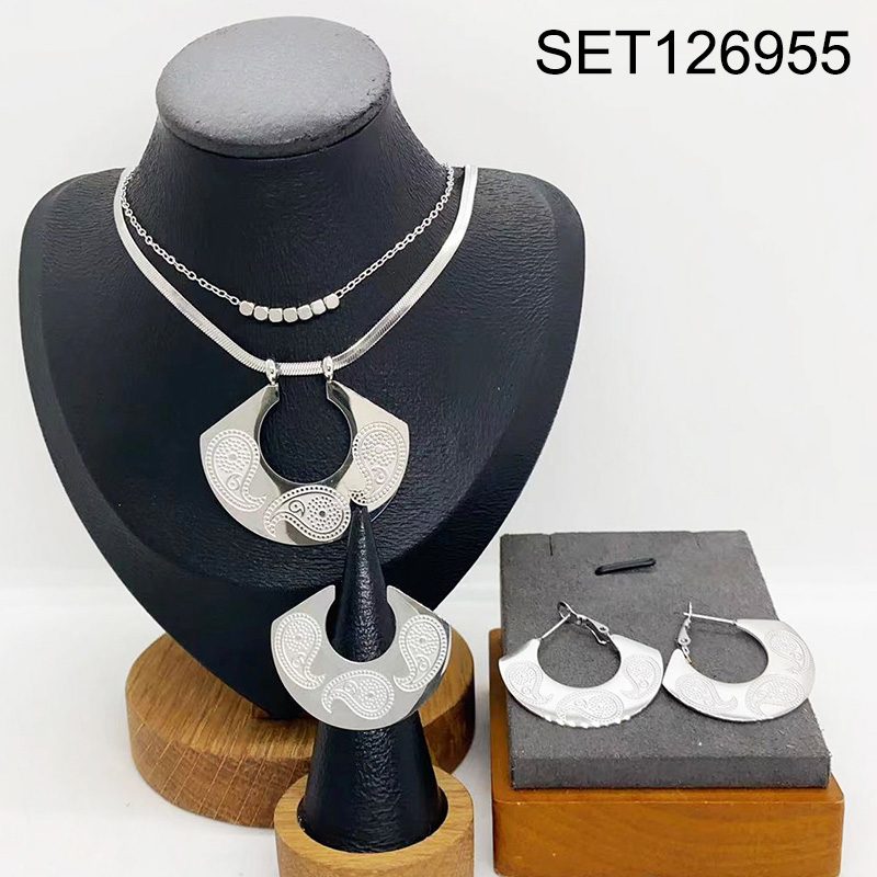 Level B Stainless Steel New Trendy Women Jewelry Two Layers Chain Fan-shaped Water Drip Steel color 3pcs SET