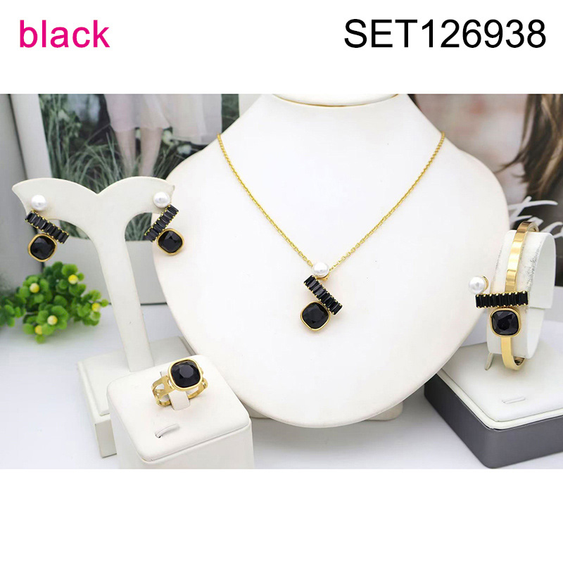 Level B Stainless Steel New Trendy Women Jewelry Pearl Style/Plastic Beads Golden 4pcs SET