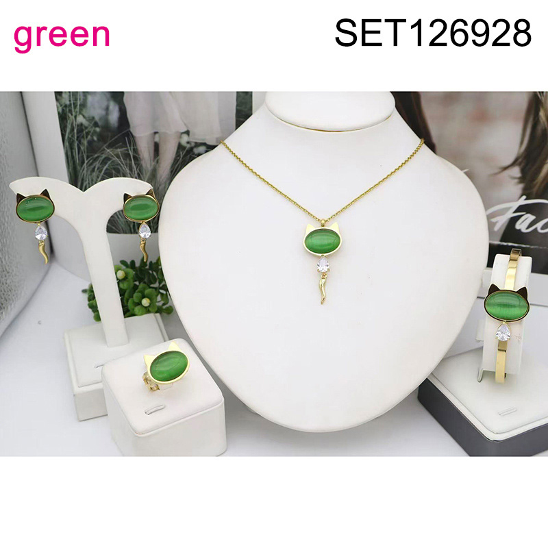 Home > Level B Stainless Steel New Trendy Women Jewelry Oval Green Opal Golden 4pcs SET