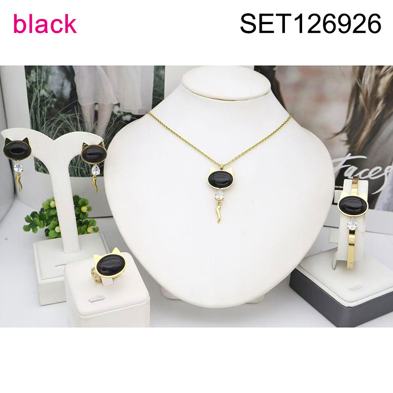 Home > Level B Stainless Steel New Trendy Women Jewelry Oval Black Opal Golden 4pcs SET