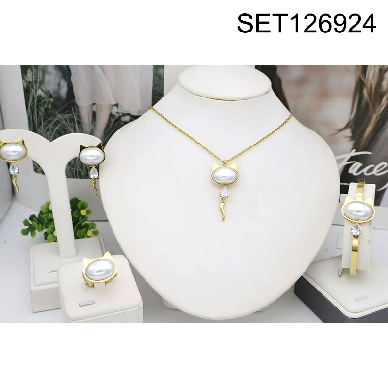 Level B Stainless Steel New Trendy Women Jewelry Pearl Style/Plastic Beads Golden 4pcs SET