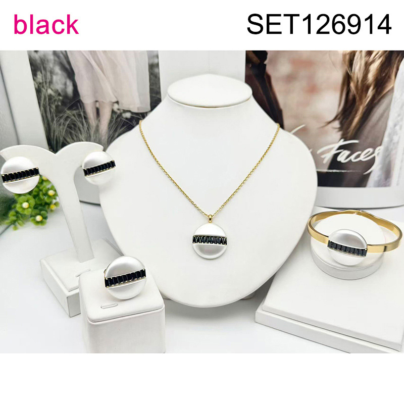 Home > Level B Stainless Steel New Trendy Women Jewelry Black Stone Round Golden 4pcs SET