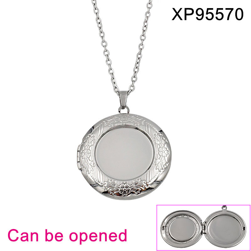Home > Level B Stainless Steel Jewelry New Trendy Carved Round Openable Photo Frame Pendant