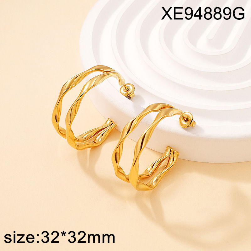 Home > Level A Stainless Steel New Trendy Women Jewelry Golden C-shaped double-layer Twisted Earrings