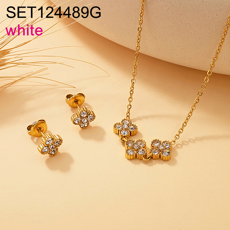 Home > Level A Stainless Steel New Trendy Women Jewelry Sticky Stone White Rhinestone Golden SYC SET
