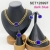 Level B Stainless Steel New Trendy Women Jewelry Dark blue Glass Golden 4pcs SET