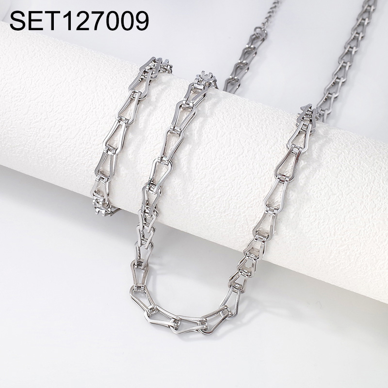 Home > Level B Stainless Steel New Trendy Man Jewelry Steel color Chain SET