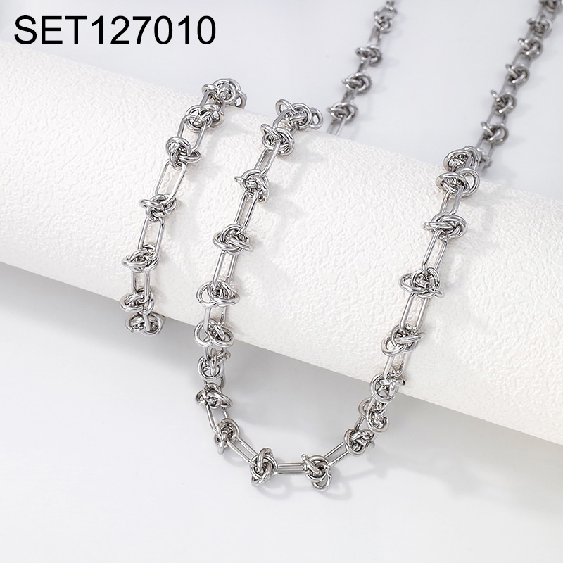 Home > Level B Stainless Steel New Trendy Man Jewelry Steel color Chain SET