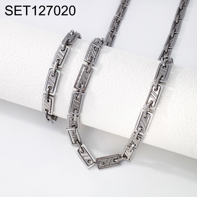 Home > Level B Stainless Steel New Trendy Man Jewelry Steel color Chain SET