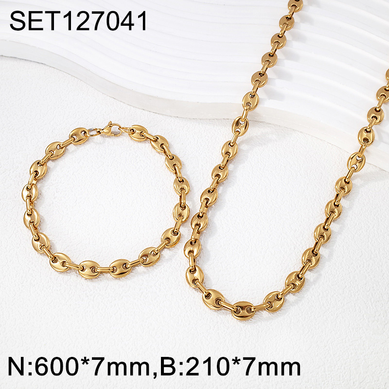 Level B Stainless Steel New Trendy Man Jewelry Pig nose Coffee Beans Golden Chain SET