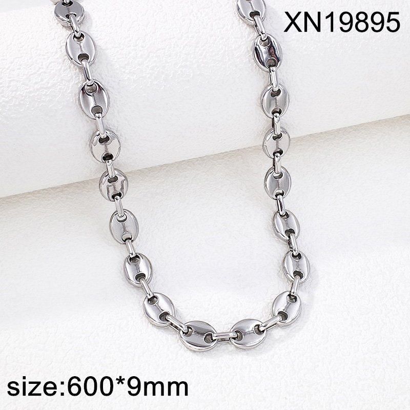 Level B Stainless Steel New Trendy Man Jewelry Pig nose Coffee Beans Steel color Thick Chain Necklace