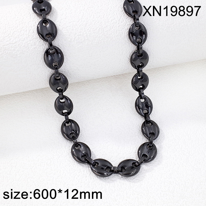 Level B Stainless Steel New Trendy Man Jewelry Pig nose Coffee Beans Plating Black Thick Chain Necklace