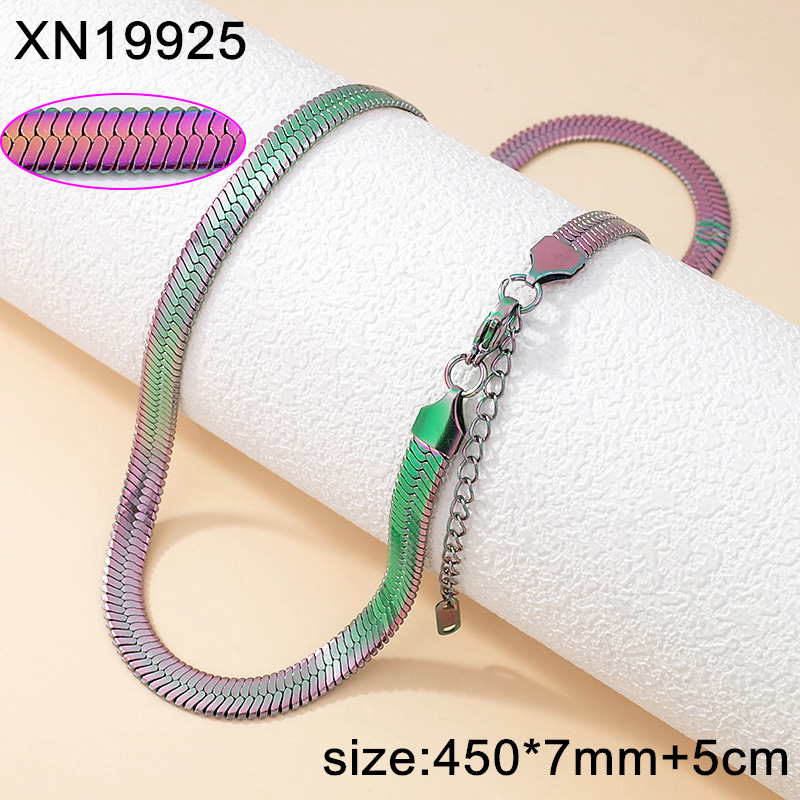 Home > Level B Stainless Steel New Trendy Women Jewelry Rainbow Colors Colorful Flat Snake Bone Chain Necklace