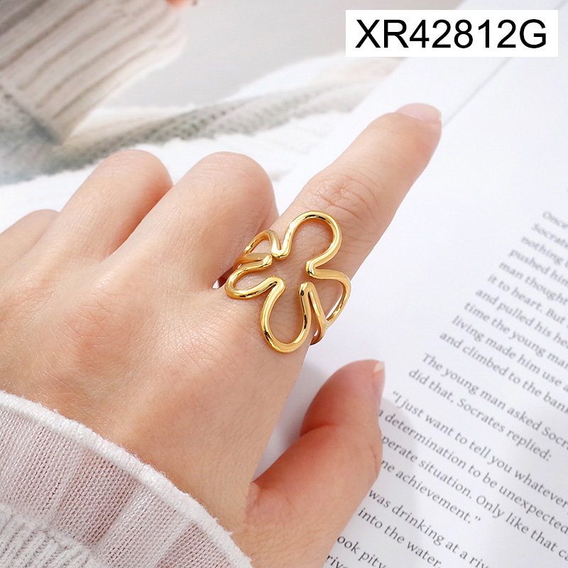 Level A Stainless Steel New Trendy Women Jewelry Flower Golden Open Rings;Ring size can be adjusted freely