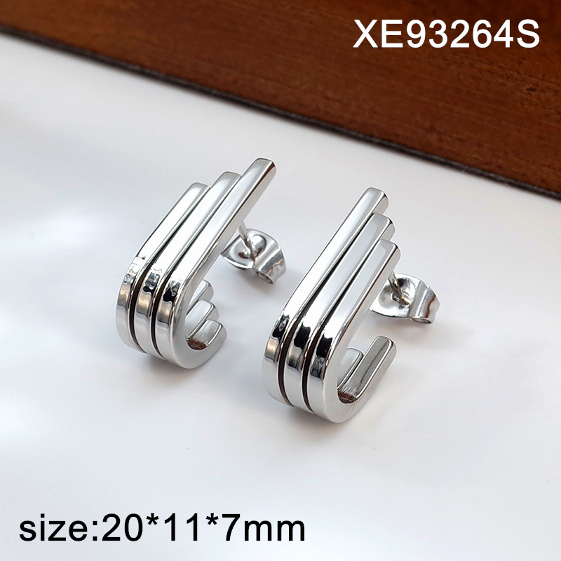 Home > Level A Stainless Steel New Trendy Women Jewelry Steel color Three Layer Lines Irregular Earrings