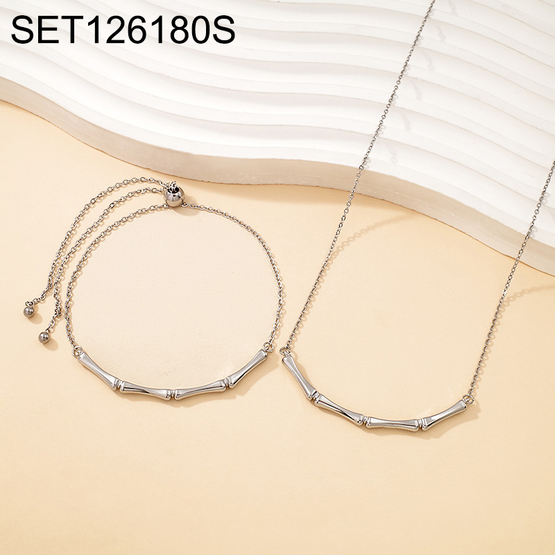 Home > Level A Stainless Steel New Trendy Women Jewelry Bamboo joint Steel color Chain SET