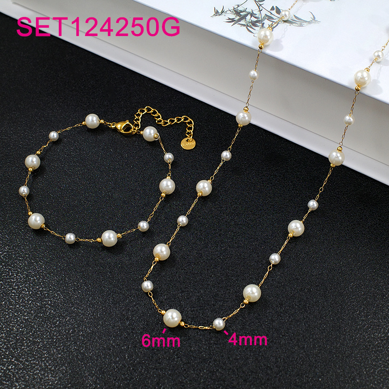 Level A Stainless Steel New Trendy Women Jewelry Pearl Style/Plastic Beads Golden SET