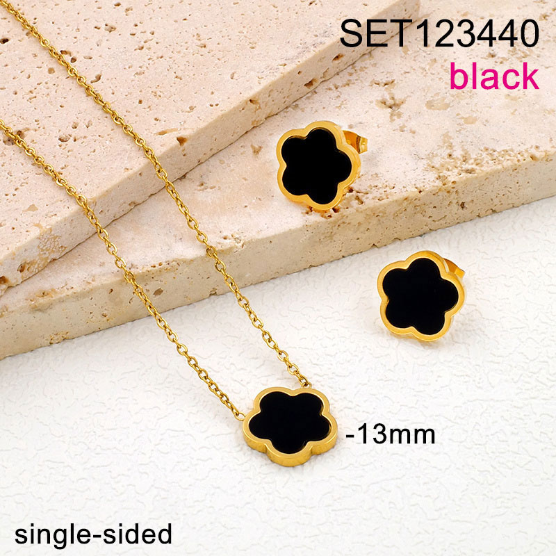 Level B Stainless Steel New Trendy Women Jewelry Single-sided Black Flower Golden SET