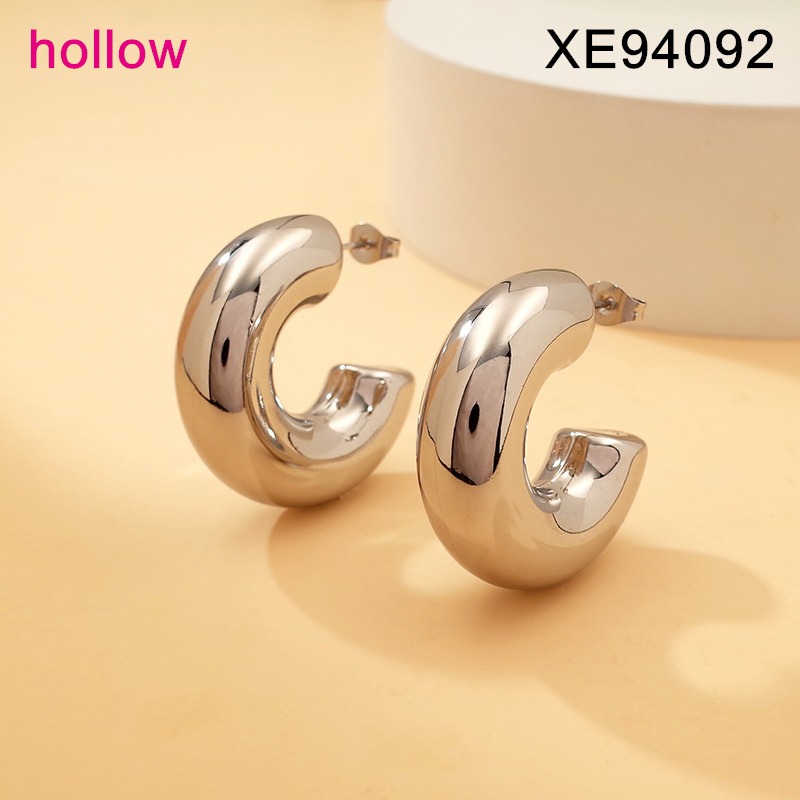 Level B Stainless Steel New Trendy Women Jewelry Steel color Hollow C-Shape Style Earrings