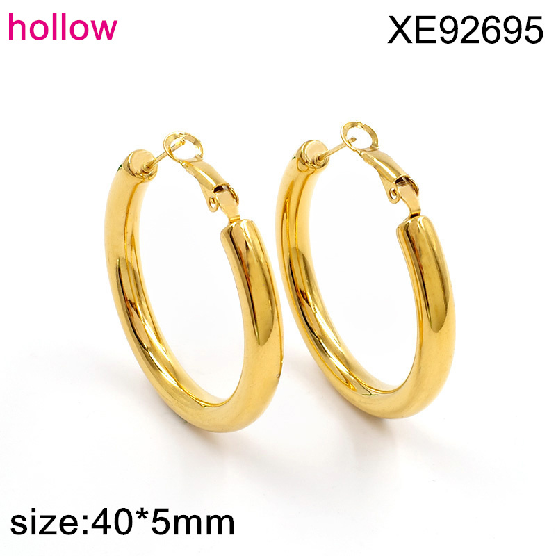 Level B Stainless Steel New Trendy Women Jewelry Hollow Round Golden Earrings