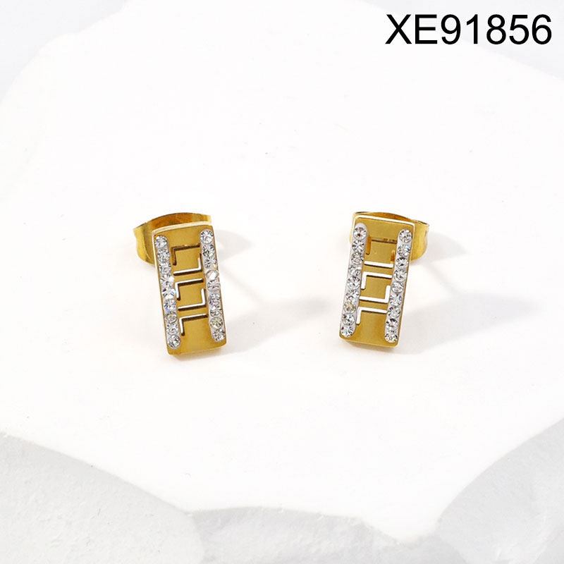 Home > Level B Stainless Steel Jewelry New Trendy Rectangle Sticky Stone Golden Earrings