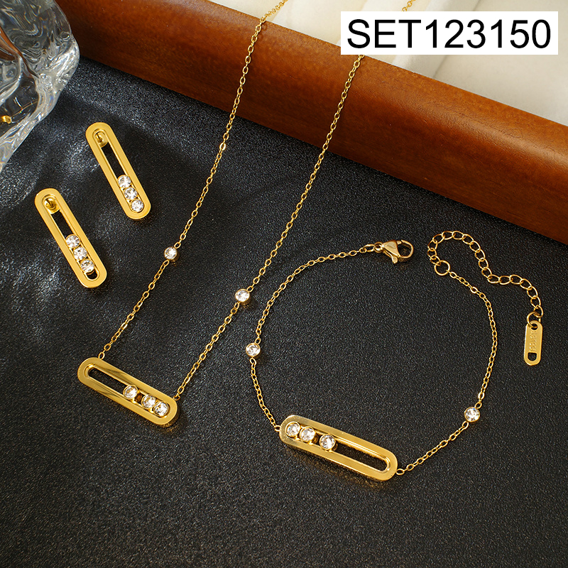 Home > Level B Stainless Steel Jewelry New Trendy Sticky Stone Golden 3pcs SET