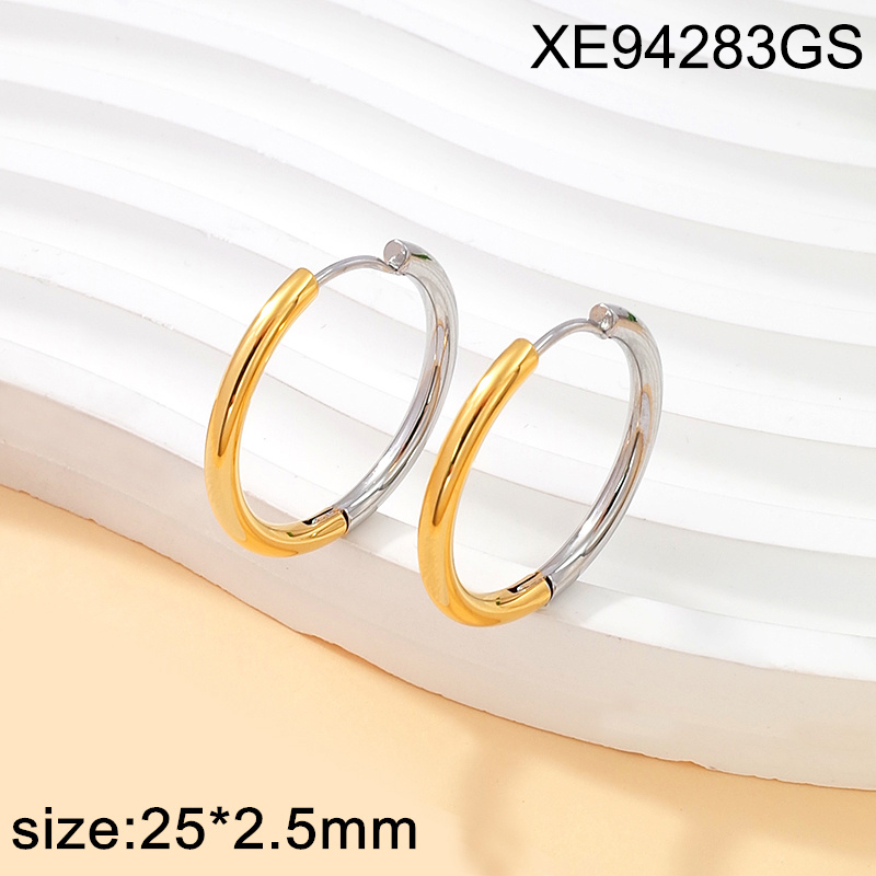 Home > Level A Stainless Steel New Trendy Women Jewelry Two Tone Round Hoop Earrings