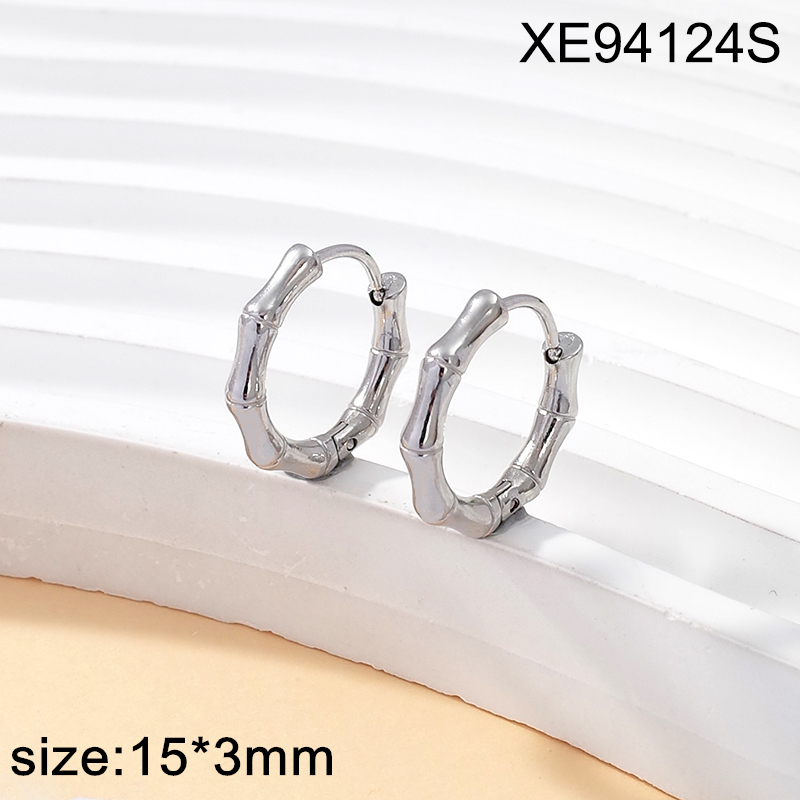 Level A Stainless Steel New Trendy Women Jewelry Bamboo Joint Steel color Hoop Earrings