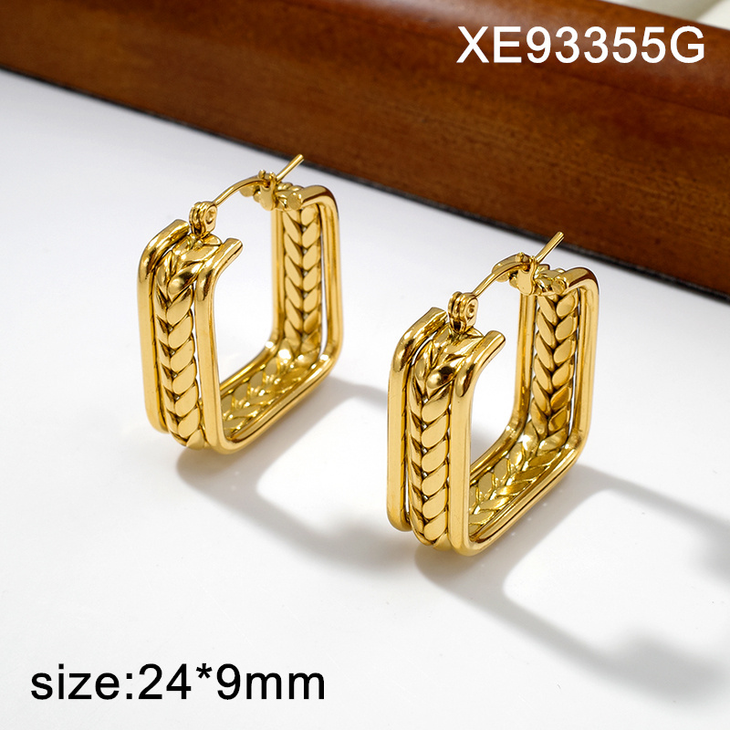 Level A Stainless Steel New Trendy Women Jewelry Square Golden Hoop Earrings