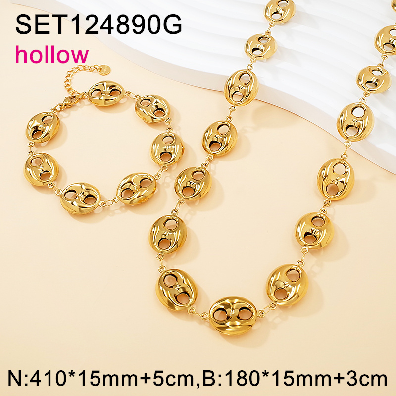 Home > Level A Stainless Steel New Trendy Women Jewelry Pig nose Oval Golden hollow SET