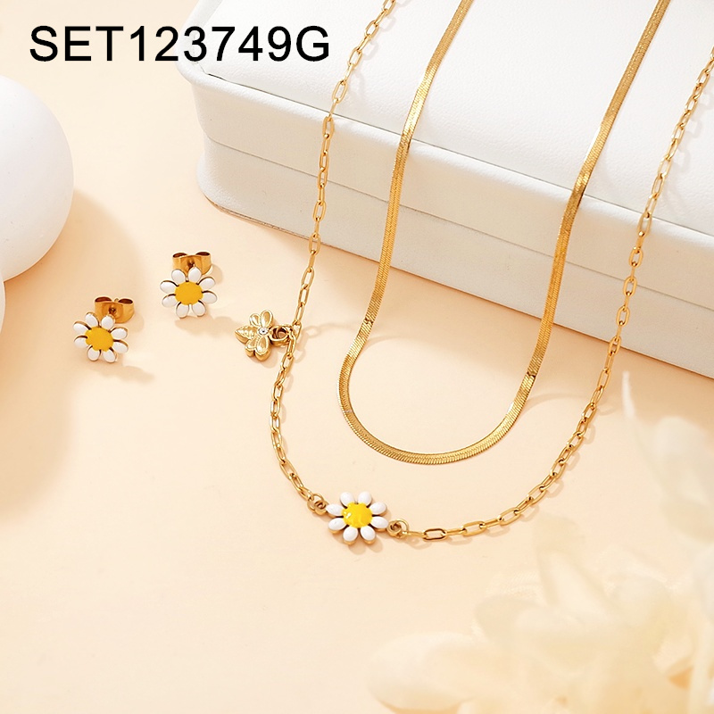 Home > Level A Stainless Steel New Trendy Women Jewelry Two Layers Chain Drip Oil/Enamel Flower Animal Bee Golden SET