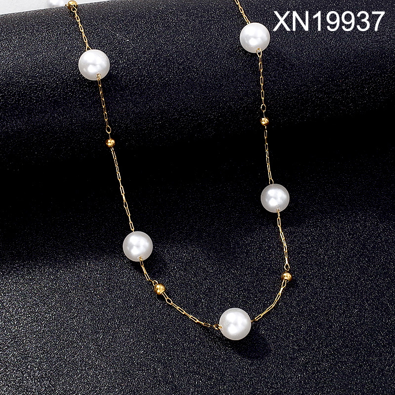 Level B Stainless Steel New Trendy Women Jewelry Pearl Style/Plastic Beads Golden Necklace