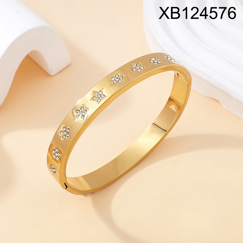 Home > Level B Stainless Steel New Trendy Women Jewelry Flower Golden Bangle