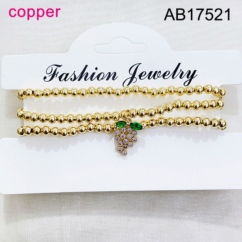 Home > Level B Fashion Jewelry New Trendy Women Jewelry Niche Design Layered Jewelry Round Beads Summer fruit style Grape Golden Elastic Bracelet;Material:copper (cobre)
