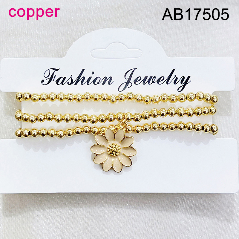 Home > Level B Fashion Jewelry New Trendy Women Jewelry Niche Design Layered Jewelry Round Beads Flower Golden Elastic Bracelet;Material:copper (cobre)