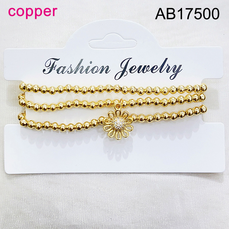 Home > Level B Fashion Jewelry New Trendy Women Jewelry Niche Design Layered Jewelry Round Beads Flower Golden Elastic Bracelet;Material:copper (cobre)
